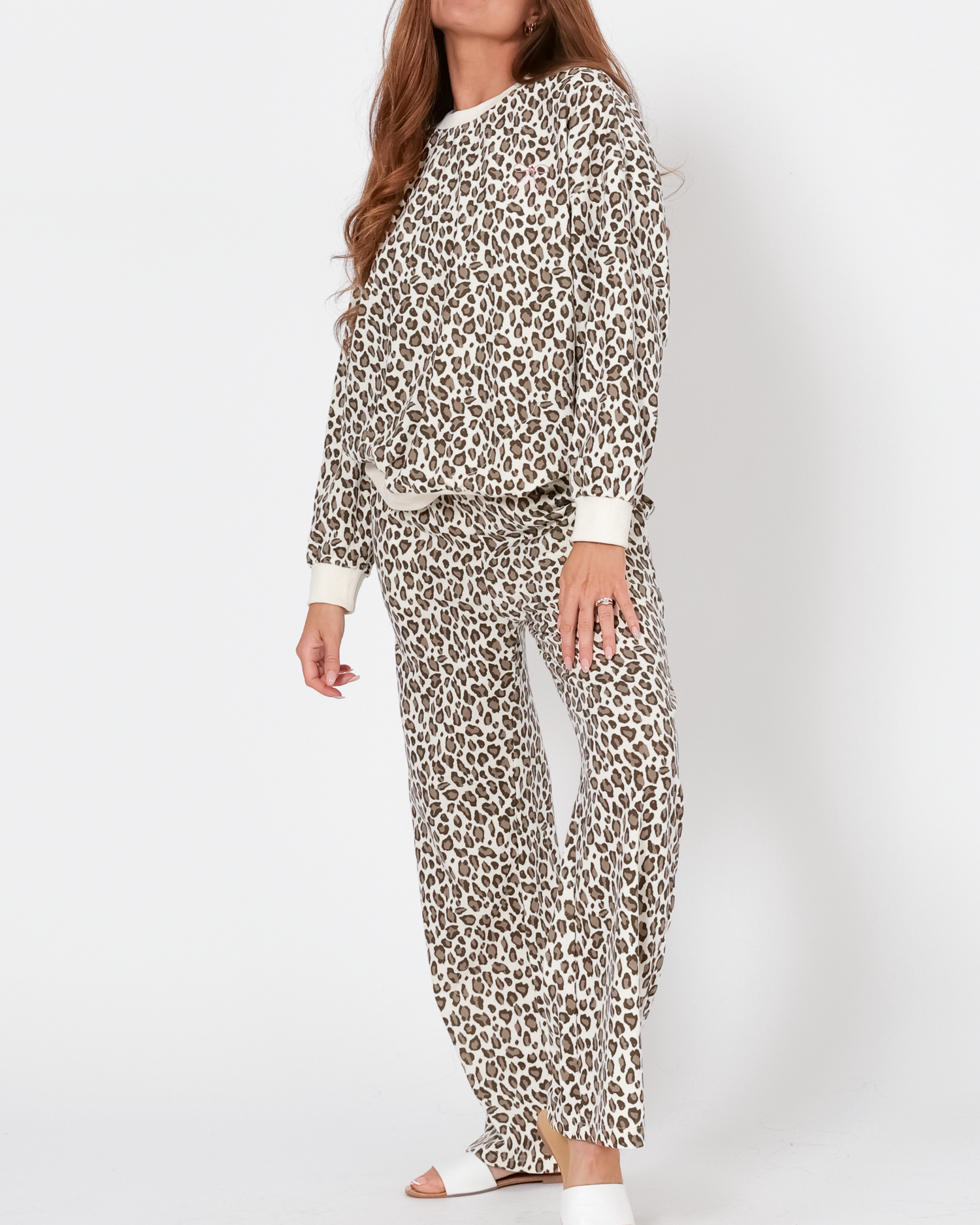 Feel light and comfortable in our Cheetah Lounge Set! This true-to-size set features lightweight fabric for ultimate comfort, with pants that have an elastic band and pockets, and a top with cute pink bow detailing. The perfect choice for a relaxing and stylish day in.