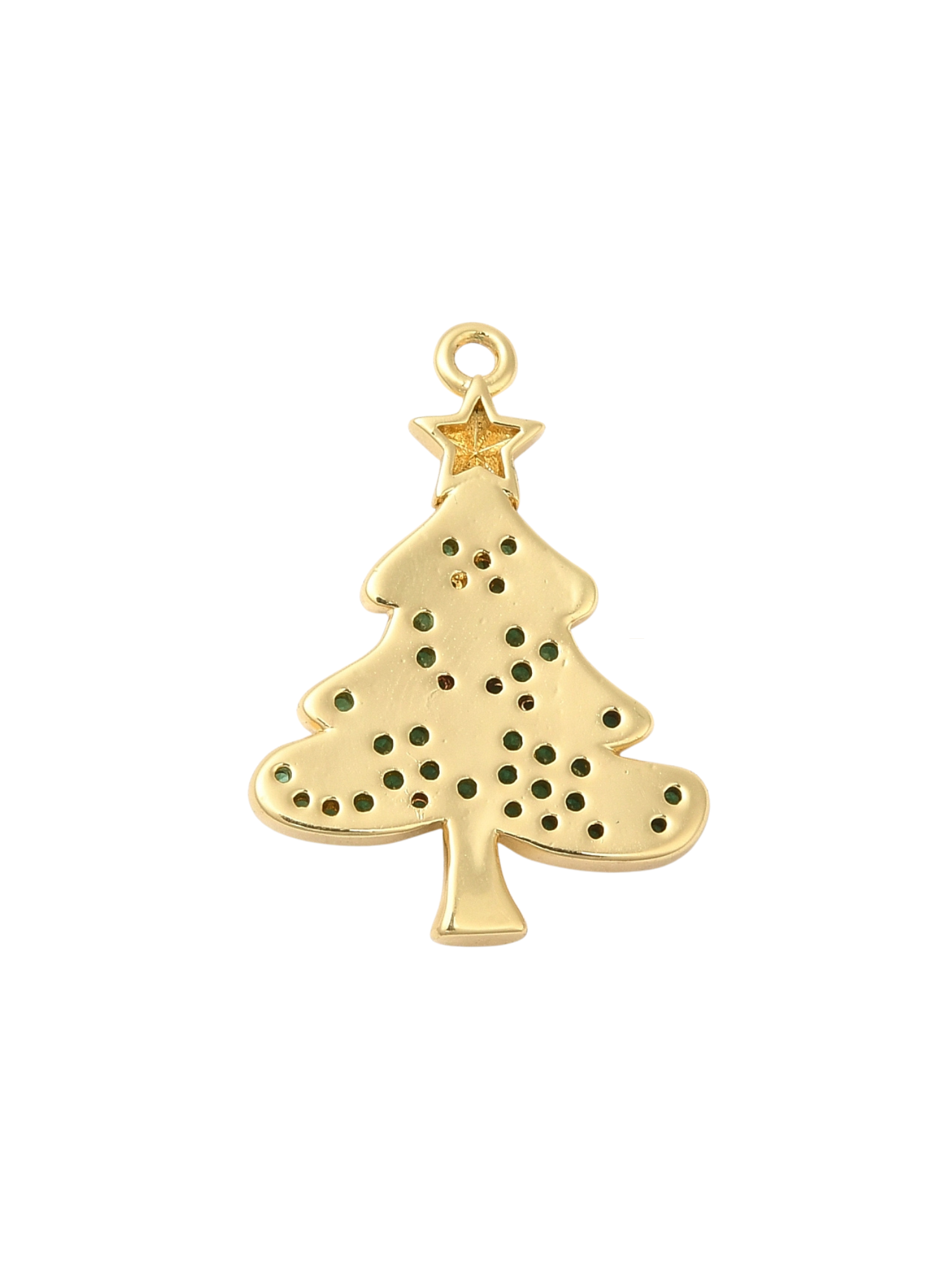 Add festive sparkle to your jewelry collection with this Gold O' Christmas Tree Charm. Adorned with green cubic zirconia pendants and red accents, the charm radiates holiday cheer. Its long lasting gold plating and detailed design make it a perfect festive addition to necklaces or bracelets.